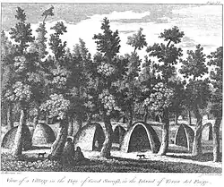 On 20 January, Banks visited an Ona village, very likely together with Buchan, whose drawing of An Indian Town at Terra del Fuego (engraved as View of a Village in the Bay of Good Success, in the Island of Terra del Fuego) illustrates Banks' description:[20]