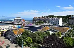 The site of the theatre was originally reclaimed land used for grazing since the early 19th century. In 1869, the site was transformed and opened as New Gardens, and later renamed Alexandra Gardens in 1880. In 1913, the gardens' bandstand of 1891 was enclosed within a building of glass to form the Kursaal, allowing audiences to enjoy band performances in all weathers. During World War I, the Kursaal served as a reception centre for injured soldiers of the Australian and New Zealand Army Corps (ANZAC) who were accommodated in local camps following the Gallipoli Campaign. The Kursaal was later demolished and replaced by the Weymouth Corporation with the Alexandra Gardens Concert Hall, which was opened on 7 June 1924 by the Mayor of Weymouth.[1] The gardens' bandstand was relocated to Nothe Gardens.[2][3][4] The hall was requisitioned for military use during World War II and reopened again in 1945.[5]