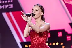 In April 2014, Kozhikina won the grand final of TV singing contest The Voice Kids Russia on the Russian Channel One.[6][2][7] In the superfinal (the last stage of the contest) she sang a Russian version of Mariah Carey's hit "My All"[8] (with newly-written Russian lyrics by Maxim Fadeev, her coach on the show).[9] The prize was 500 thousand roubles and a recording contract with Universal Music.[10]