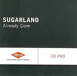 "Already Gone" is a song co-written and recorded by American country music duo Sugarland. It was released in September 2008 as the second single from their album Love on the Inside, which was released on July 29, 2008. Sugarland's members, Kristian Bush and Jennifer Nettles, wrote the song with Bobby Pinson, with whom the duo also co-wrote two of their previous singles, "Want To" and "All I Want to Do".