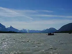 The Alsek and East Alsek rivers are a part of the Yakutat area limited entry set gillnet fishery.[15] Both rivers produce king, silver, and sockeye commercially. Chum and pink salmon can also be caught, but are not generally sought after due to their relative lack of worth/quality. These two rivers can be characterized as low volume fisheries, while the Alsek river in particular produces particularly high quality salmon due to its low temperature.[16] The Alsek's high silt content also prevents the sun from damaging the fish.