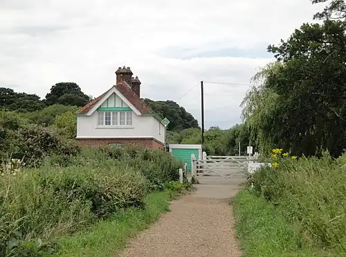 The station house is now a private residence.[5] It is a prominent landmark on the walking route and cycle path that runs through Borthwood Copse and into Alverstone Mead.