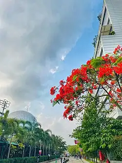 The university's campus is located in an urban setting at Kuratoli, Kuril in Dhaka (Beside Bashundhara Residential Area). The campus area is about 12 acres (4.9 ha).[7] There is a total building area of 1,300,000 square feet (120,000 m2).[20][21] The university campus is known for having a glass-covered central globe structured building.[22][23]
