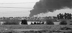 A smoke plume caused by an insurgent attack on the government center in downtown Ramadi, 13 March 2006