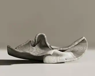 In "Formal Matter," Zaki's encompassing "Rocks" suite (e.g., Rock #29) depicts dramatically silhouetted, coastal outcroppings that Zaki isolates against grey skies, imbuing them with both the grandeur and monumentality of large abstract sculptures and a sense of the fantastical or suspect, which itself is troubled by the abundance of surface detail.[17][36] The "Carvings" works (e.g., Carving #12) stretch believability further, isolating what appear to be gnarled, meticulously carved wood forms resembling waves, seed pods, or shells, that are actually flat planks, photographed and digitally manipulated.[17][36] Critics suggested the work of these series recalled, and perhaps reflected ironic takes on, the work of Bernd Becher and Hilla Becher, Karl Blossfeldt, Imogen Cunningham, Carleton Watkins, and Edward Weston.[78][36] Zaki's subsequent "Getting Lost" series (2018) features hyper-resolution prints of trees set against night-black backdrops that digitally intertwine two trees in intimate pairings, sometimes with startling color effects.[79]