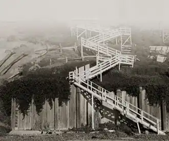 Zaki's move to the Orange County beachside turned his attention to lifeguard huts in the "Relics" series (2010).[57][58] Here, he also shot from below, eliminating contextualizing clues (sand, water) to starkly isolate the towers against the sky, then digitally stripped away functional elements (ladders and ramps) before re-pairing the towers with different skies to create off-key color and lighting effects.[58][59][15] Art in America likened the "seamless and quite beautiful" monumental photographs to the work of Florian Maier-Aichen and Beate Gütschow.[15] Other reviews described the transformed images, such as Untitled (Tower 19X), as "an imaginary lost modernism,"[3] "marooned spaceships,"[60] and uncanny portraits of alien sculptures suspended mid-air.[61][62][3]