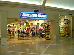 Anchor Blue Inc. (formerly Miller's Outpost) was an American clothing retailer which had over 100 stores in the western United States. It generally sold its own Anchor Blue brand name of youth-oriented denim, graphic T-shirts and casual clothing.[1] Sometimes the company was referred to as the Anchor Blue Inc., but their retail clothing chain of stores was labeled as Anchor Blue. The Anchor Blue and Miller's Outpost brands were acquired by Perry Ellis International in 2012.[2]