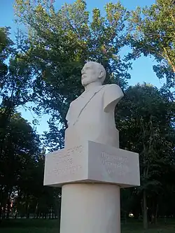 During World War II, Andrushivka was under Nazi German occupation from July 10, 1941, to December 27, 1943. Germans tortured and shot 460 civilians of the town, including 216 children and 25 old men, and drove 84 people to forced labor in Germany 84 people.[4] The Germans created a Jewish ghetto in Andrushivka. In May 1942, the ghetto was liquidated and 220 Jewish residents were shot close to the city's hospital.[5] During the war, the sugar factory was bombed. Andrushivka was liberated by Soviet troops on 27 December 1943. Between 9 January and 29 February 1944 in the village housed the command post headquarters of the 1st Ukrainian Front, led by an outstanding Soviet commander, Army General Vatutin. An obelisk was constructed in Andrushivka in honor of fallen soldiers in World War II.