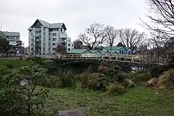 The sheds are named after Antigua Street and the Antigua Bridge, which is today the northern terminus of Antigua Street;[3][4] although until 1904, Antigua Street extended as far north as Armagh Street.[5] The boat sheds are right next to the northern end of the Antigua Bridge and opposite Christchurch Hospital.