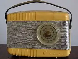 Chrysler and Philco announced an all-transistor car radio in the April 28, 1955, edition of the Wall Street Journal.[1] This Philco car radio model was the first tubeless auto set in history to be developed and produced.[2] It was a $150 option for 1956 Chrysler and Imperial cars and hit the showroom floor on October 21, 1955.[3][4][5]