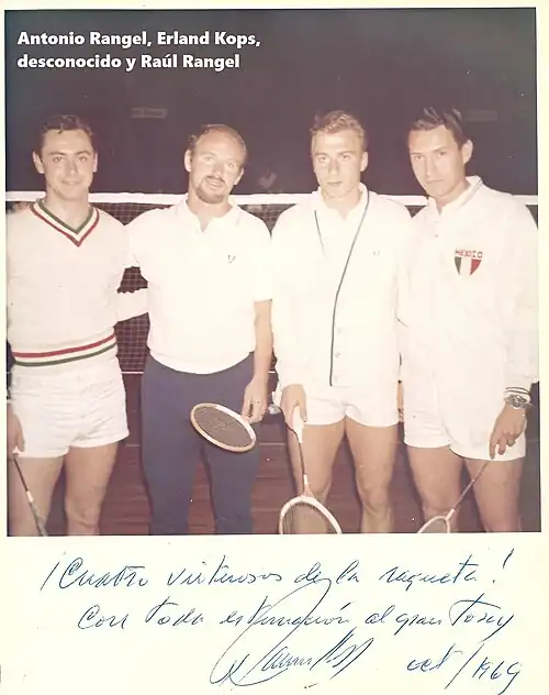 In 1958, when he was just 14 years old, Antonio Rangel became the national champion of Mexico for the first time, competing in the doubles category, together with his brother Raul Rangel. By 1967, he had already won 23 Mexican National Championships. In 1966, he won two more titles in the Mexican Open of Badminton as a singles player and in the doubles category, teaming up with his brother Raul Rangel.[1]