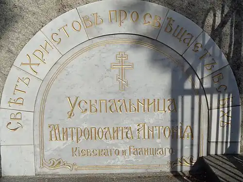Metropolitan Anthony (Russian: Митрополит Антоний, secular name Aleksey Pavlovich Khrapovitsky, Russian: Алексей Павлович Храповицкий; 17 March (O.S.) 1863 – 10 August 1936) was a bishop of the Russian Orthodox Church in the Russian Empire, the Metropolitan of Kiev and Galicia, who after the defeat of Gen Pyotr Wrangel's White Army in South Russia in November 1920 emigrated and in 1921 settled down in Sremski Karlovci, Serbia. He, along with several other Russian bishops in exile, established an independent Russian church administration that sought to embrace all Russian Orthodox diaspora, known as the Russian Orthodox Church Outside Russia (ROCOR).