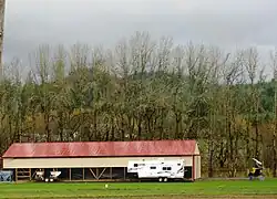 In 2006, the owners filed again with the county to expand the use of the airport, which was to include commercial use and the basing of ten aircraft with usage to total 3,016 departures each year.[4] A land-use meeting was held in September 2006,[5] with the county denying the application for commercial use at the airport.[6] In 2007, the Applebees appealed the county's decision to the Oregon Land Use Board of Appeals (LUBA), but lost the decision in June.[7] Later LUBA sent part of the case back to the county and the Applebees were allowed to have agricultural operations at the airstrip, but they dropped an appeal to the Oregon Court of Appeals in November 2007 and announced plans to sell the property.[8] In October 2008, the Applebees received initial approval to expand the airport grounds by adding a hangar, parking lot, and helipad.[9]
