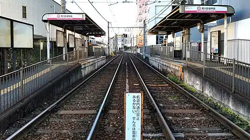 Arakawa-kuyakushomae Station (荒川区役所前停留場, Arakawa-kuyakushomae-teiryūjō) is a tram station operated by Toei's Tokyo Sakura Tram located in Arakawa, Tokyo Japan.[1][2][3] It is 0.6 kilometres from the terminus of the Tokyo Sakura Tram at Minowabashi Station.