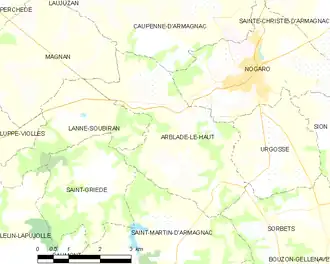 Arblade-le-Haut is located in the canton of Grand-Bas-Armagnac and in the arrondissement of Condom.