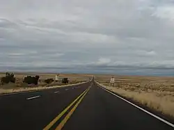 SR 77 continues due north through the communities of Shumway and Taylor, becoming Main Street in Snowflake. SR 77 intersects with the eastern terminus of SR 277 at 3rd Street North on the northern edge of town. Following Main Street north out of Snowflake, SR 77 crosses a bridge over Cottonwood Wash. The highway continues north, intersecting the northern terminus of SR 377 at a "wye" intersection on the outskirts of Holbrook, in front of the Navajo County Superior Court.[5] North of the Superior Court, SR 77 meets US 180 at a junction, where US 180 joins SR 77. Both highways continue north concurrently on Apache Avenue, crossing over the Little Colorado River into downtown Holbrook, where Apache Avenue becomes Navajo Boulevard. At the intersection with Hopi Drive, which carries part of the I-40 Business Loop (I-40 Bus.), US 180 leaves SR 77, heading west with I-40 Bus. towards Winslow and Flagstaff. SR 77 continues north on Navajo Boulevard, concurrent with I-40 Bus. to I-40 exit 286. SR 77 leaves Navajo Boulevard and I-40 Bus., becoming concurrent with I-40 heading east. On the edge of town, Navajo Boulevard and I-40 Bus. loop back to I-40/SR 77 at exit 289. At exit 292, SR 77 leaves I-40 continuing north towards the Navajo Nation. SR 77 ends at the Navajo Nation boundary, north of Holbrook. Past the Navajo Nation boundary, SR 77 becomes BIA Route 6 northbound to SR 264 near Keams Canyon.[4]
