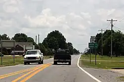 Highway 130 runs south along a section line to an intersection with Highway 980, which gives access to the Almyra Municipal Airport. Highway 130 continues south along the city limits of Almyra, with Highway 130 Spur running east into town as Main Street.[5] South of Almyra, Highway 130 turns east and crosses Little LaGrue Bayou before a junction with Highway 33. The highway turns south at this junction, continuing south as a section line road and again crossing Little LaGrue Bayou before entering DeWitt.
