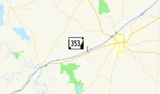 The highway begins at US 67 west of Hope in the Arkansas Timberlands. Highway 353 runs northwest along an overpass over I-30 to a crossroads at Guernsey, where it terminates. The highway does not provide access to I-30.[3]