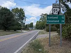 The highway passes through Beverage Town, Scotland and Walnut Grove before entering Clinton. In the city, Highway 95 begins an overlap with U.S. Route 65B (US 65B) heading south. The concurrent routes pass near the Van Buren County Courthouse and Walter Patterson Filling Station, both NRHP-listed properties.[4] US 65B terminates at the parent route, and US 65/Highway 95 run south until Highway 95 splits from US 65 near the Ozark Health Medical Center. The route runs southeast to terminate at Highway 330 near Greers Ferry Lake.[3]