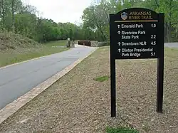 The Arkansas River Trail is a rail trail that runs 17 miles (27 km) in along both sides of the Arkansas River in Central Arkansas.