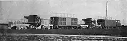 Estonia built a total of 13 armoured trains during the Estonian War of Independence: six on broad-gauge and seven on narrow-gauge railways. The first three armoured trains with fully volunteer crews formed the backbone of the front in critical early stages of conflict. Carriages were former goods carriages and at first armor was limited to wood and sand, but later steel plating, machine guns, and cannons were added.[24] Estonia later created a regiment for its armoured trains in 1934, called the Armoured Train Regiment, which consisted of 3 armoured trains.[25] The regiment was dissolved in 1940, after the USSR invaded the Baltic States, and its railway artillery cannons were transferred to the Soviet army.[26]