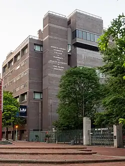 In 1929, the college moved to 600 Lafayette Avenue, which included a gymnasium where the school's intercollegiate basketball team played. The current campus at LIU's University Plaza was funded by Arnold and Marie Schwartz in 1976.[1]