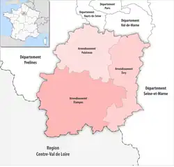 1. Arrondissement of Étampes, (subprefecture: Étampes) with 75 communes. The population of the arrondissement was 133,168 in 2021.