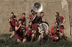 Artistas del Gremio is a Spanish fanfare-type music band, composed of brass and percussion instruments and performing music and street shows.[1] It was founded in Ejea de los Caballeros (Zaragoza) in 2005. Since then has toured the Iberian Peninsula and performed in several European countries and Ecuador.[2] They have participated in the soundtracks of a film and several television programs. They have recorded 4 albums and a documentary that show the evolution of the band.