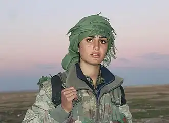 2. ^ a b Lion, Patrick (8 September 2016). "Female soldier dubbed the 'Kurdish Angelina Jolie dies' while fighting ISIS in Syria". Mirror.