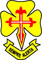 The membership badge of Associação Guias de Portugal shows a trefoil superimposed with an elongate cross fleury, the ends having a shape like a fleur-de-lys.