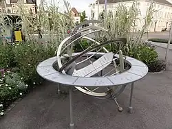 Fixed astronomical rings are mounted on a plinth, like armillary spheres, and can be used as sundials.