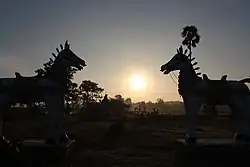 Terracotta horse sculptures on the banks of Aiyyanar pond.