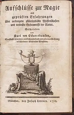 2. ^ a b Von Eckartshausen, Karl (1788). Aufschlüsse zur Magie asu geprüften Erfahrungen über verborgene philosophische Wissenschaften und verdeckte Geheimnisse der Natur, Erstes Buch. Munich.