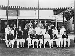 The end of the war marked the start of the 1945 cricket season.[1][2] Plum Warner organised a series of matches between England and Australian servicemen, known as the Victory Tests, to celebrate the end of hostilities.[3] However, Australian cricket administrators would not accredit the three-day matches as official Test matches,[3][4] arguing that there were not enough Test-level players in the armed services; Lindsay Hassett was the only Australian who had Test experience.[5][6]