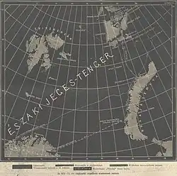 On 20 June 1872, the Isbjørn set sail from the Norwegian port of Tromsø with the goal of laying a supply depot at Cape Nassau on Novaya Zemlya. Aboard were Count Wilczek, Baron von Sterneck, and Johan Kjeldsen as captain. The Tegetthoff with her crew of 24 left Tromsø on 13 July 1872.[16] The two ships met near the Barents Islands off Novaya Zemlya, where the emergency depot was laid, in case Tegetthoff's crew would need supplies on their way back. Having completed her mission, Isbjørn then returned to port.[18] Tegetthoff continued northward. At the end of August, she got locked in pack ice north of Novaya Zemlya and drifted to hitherto unknown polar regions.[19] For an extended period of time, the ship was under threat of being crushed by ice. The expedition members frequently prepared to abandon ship.[20]