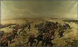 "There ensued one of the most terrible battles conceivable. The troops were fired upon from every house, from every window, from each split door; and even women took part. Located at the western entrance to the city, the military hospital was full of sick and wounded insurgents. . ."[b]