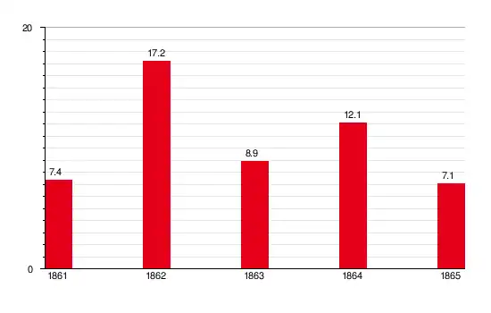 In Austria, the results of the battle were so decisive that Rechberg reversed his opinion completely, and asked the Reichsrat to approve all the new naval expenditures Ferdinand Max had been calling for. In June, the Reichsrat approved Archduke Ferdinand Max's budget, but directed the Oberkommandant der Marine to cut expenditures not related to training, naval construction and ship maintenance. The Reichsrat also ordered Ferdinand Max to purchase more coal from domestic sources, and to only rarely send warships out beyond the Mediterranean Sea.[64] For 1863, the Imperial Austrian Navy was allocated some 8,900,000 Florins, a huge sum and far higher than previous budget outlays, but this was below the 10,900,000 Florins that Ferdinand Max had originally asked for. In compensation however, Wickenburg was able to acquire a further 4,000,000 Florins from the Reichsrat for the navy's 1862 budget. In November, the bill was approved and the Imperial Austrian Navy received its largest budget in history.[65]
