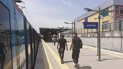 Aydıntepe station was closed down on 1 February 2012, when all train traffic between Pendik and Arifiye was temporarily suspended due to construction of the Ankara-Istanbul high-speed railway.[2] The station was demolished shortly after and a new station was built in its place. The new station consists of an island platform serving two tracks, with a third express track on the south side.