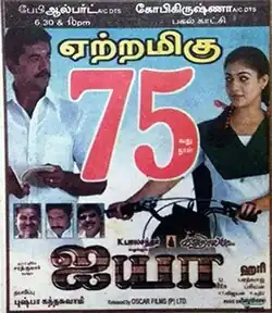 Ayya (transl. Monsieur) is a 2005 Indian Tamil-language action drama film written and directed by Hari, and produced by Kavithalayaa Productions. The film stars R. Sarathkumar in a dual role with Napoleon and Nayanthara in the lead while Vadivelu, Prakash Raj, Lakshmi, Rohini, and Charle play supporting roles. The music was composed by Bharadwaj with editing by V. T. Vijayan and cinematography by Priyan. Ayya released on 14 January 2005 coinciding Pongal and became a commercial success.