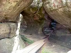 Błędne Skały (German: Wilde Löcher) – a rock formation at an altitude of 853 m above sea level, forming a picturesque labyrinth (rock city), located in south-western Poland in the Central Sudetes in the Table Mountains.