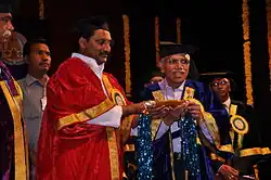Belle Monappa Hegde (born 18 August 1938) is a cardiologist, professor of medicine, and author. He was the vice chancellor of Manipal Academy of Higher Education from 1999 to 2003.[3] He was awarded Padma Bhushan in 2010 and Padma Vibhushan in 2021.[3] He has supported homeopathy[4] a pseudoscientific[5] system of alternative medicine and quantum healing.[6]