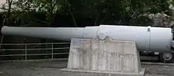 A 25-ton version with a barrel of 300 inches (30 calibres) and firing a 450-pound projectile was supplied in 1884 to the Australian colony of Victoria, mounted on the gunboat HMVS Victoria.[5] This gun was subsequently replaced on Victoria by an 8-inch gun, and in 1887 was mounted at Fort Franklin as a coast defence gun.[6]