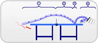 In sports, backspin or underspin refers to the reverse rotation of a ball, in relation to the ball's trajectory, that is imparted on the ball by a slice or chop shot. Backspin generates an upward force that lifts the ball (see Magnus effect).[1] While a normal hit bounces well forward as well as up, backspin shots bounce higher and less forward. Backspin is the opposite of topspin.
