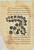 Another illustrated manuscript which is tentatively attributed to pre-Mongol Baghdad is the dispersed 1224 Dioscorides (De Materia Medica 1224).[3][12] Here again, attribution to Baghdad remains tentative, and a more cautious attribution, such as "Iraq or Northern Jazira, possibly Baghdad" is often preferred.[13]