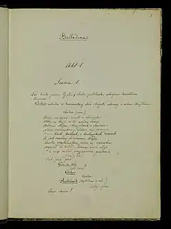 ![]() The manuscript of Balladyna given by Słowacki to friend Józef Reitenheim in 1834 | |
