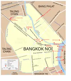 Bangkok Noi (Thai: บางกอกน้อย, pronounced [bāːŋ.kɔ̀ːk nɔ́ːj]) is one of the 50 districts (khet) of Bangkok, Thailand. Neighboring districts are (from north clockwise) Bang Phlat, Phra Nakhon (across Chao Phraya River), Bangkok Yai, Phasi Charoen, and Taling Chan.