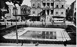 The Ottoman Bank opened a branch in Beirut immediately after its creation in 1856. It was reorganized in 1863 as the Imperial Ottoman Bank, known by its French acronym BIO for Banque Impériale Ottomane. In the 1890s, the BIO was instrumental in developing the Port of Beirut and the Beirut-Damascus railway and extensions in Syria.[2] The branch was initially located inside Khan Antoun Bey in the Beirut Souks; in 1892 it moved to a new building on place des canons, now Martyrs' Square; and in 1906 to another new building in Western architectural style on the waterfront at the northern end of the street later named Allenby Street, while the previous location was repurposed as the Khedivial Hotel.[3] The former two venues were destroyed during the Lebanese Civil War and not rebuilt during postwar reconstruction, while the latter was replaced before the war by the high-rise office building known as One Allenby Street.