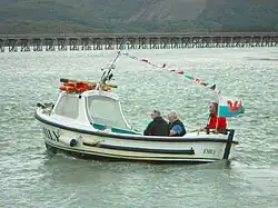 "Emily", one of the two Barmouth Ferry passenger boats. Barmouth Bridge is in the background.