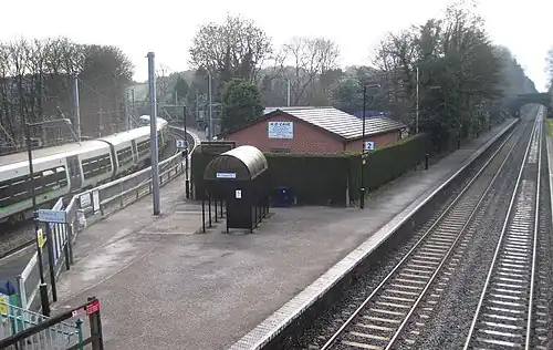 Barnt Green railway station serves the village of Barnt Green, North Worcestershire, England. It is situated 9+1⁄2 miles (15.3 km) south west of Birmingham New Street. The station, and all trains serving it, are operated by West Midlands Trains.