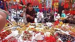 Barrio Chino (Chinese: 墨西哥城唐人街; Pinyin: Mòxīgē chéng tángrénjiē) is a barrio located in the downtown area of Mexico City, near the Alameda Central and Palacio de Bellas Artes. Barrio Chino exists primarily on two blocks along Dolores Street and one block east and west of the street. There was an expulsion of the ethnic Chinese in the 1930s and since then the ethnic Chinese have mixed and dispersed with the local population.[1] According to the government of Mexico City, about 3,000 families in the city have Chinese heritage.[2] In many parts of the older sections of the city, there are “cafes de chinos” (Chinese cafes), which are eateries that serve Chinese and Mexican food.[1] The buildings in Barrio Chino are no different from the rest of the city, but businesses here are either restaurants or importers. Most of the shops and restaurants here had abundant Chinese-style decorations and altars, but statues of the Virgin of Guadalupe and San Judas Tadeo (a popular saint in Mexico) can be seen as well.[3]
